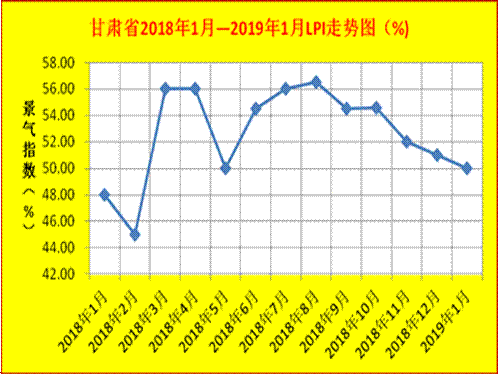 2019年2月份甘肅省物流業景氣指數(LPI)為45.5%,比上月回落4.5個百分點,快遞業景氣指數(LPI)為50%,高于全省平均水平。各分項指數除主營業務成本、業務活動預期外,均有不同程度的回落。分析認為,2月份甘肅省物流景氣指數比上月回落,顯示出經濟運行中的物流需求回落處于收縮區間。