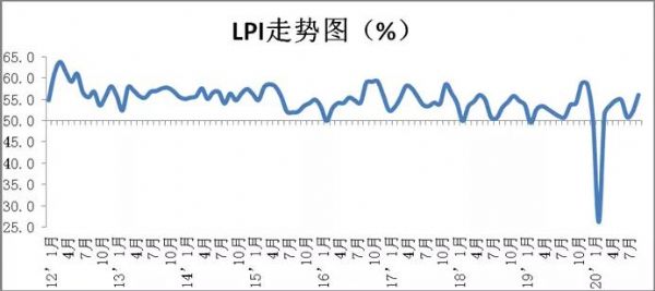 中國物流與采購聯合會發布的2020年9月份中國物流業景氣指數為56.1%,較上月回升3.9個百分點;中國倉儲指數為50.8%,與上月持平。