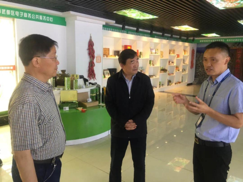 在隴南東盛物流有限公司總經理費治東帶領下,岳會長一行先后參觀了東盛國際商貿物流港電商中心和倉儲物流中心。在電商中心,詳細了解了隴南當地富有特色的武都花椒、中藥材、橄欖油等農特產品銷售情況和電商扶貧服務中心、阿里巴巴·隴南產業帶運營情況;在倉儲物流中心,參觀了初具規模的統倉共配城市配送體系,了解了倉配中心功能布局、物流運輸、周轉率、吞吐量、運輸時效等情況。