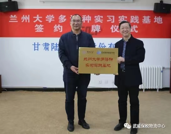 3月30日下午,蘭州大學外國語學院相關負責人在甘肅(武威)國際陸港與武威保稅物流中心舉行“蘭州大學多語種實習實踐基地”簽約授牌儀式。