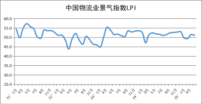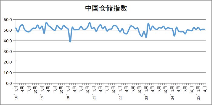 中國物流與采購聯合會發布的2025年4月份中國物流業景氣指數為51.1%,較上月回落0.4個百分點;中國倉儲指數為50.7%,較上月回落0.1個百分點。